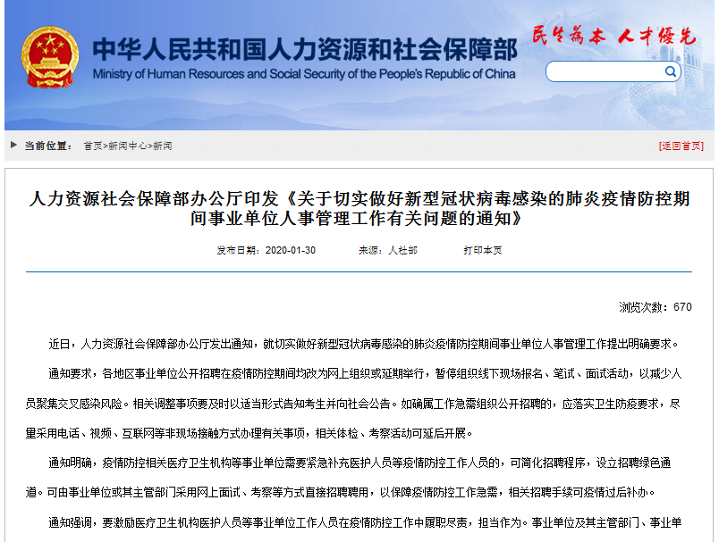 通知要求,各地區(qū)事業(yè)單位公開招聘在疫情防控期間均改為網(wǎng)上組織或延期舉行,暫停組織線下現(xiàn)場報名、筆試、面試活動,以減少人員聚集交叉感染風險。