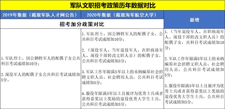 2020年軍隊文職考試預公告陸續(xù)發(fā)布!今年招考變化頗多,招錄人數(shù)增加、加分群體范圍擴大、筆試內容有調整、福利待遇增多、免試政策、戶口政策……